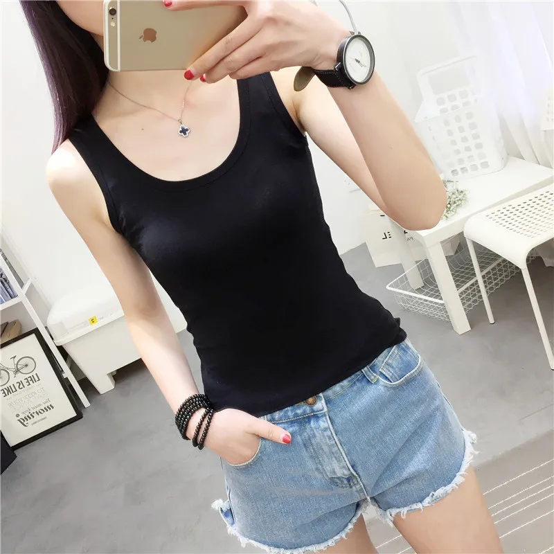 .Gallery for Women Summer T Shirts O Neck Sleeveless White & Black T-shirt Women Tee Shirt Solid Camisa Feminina